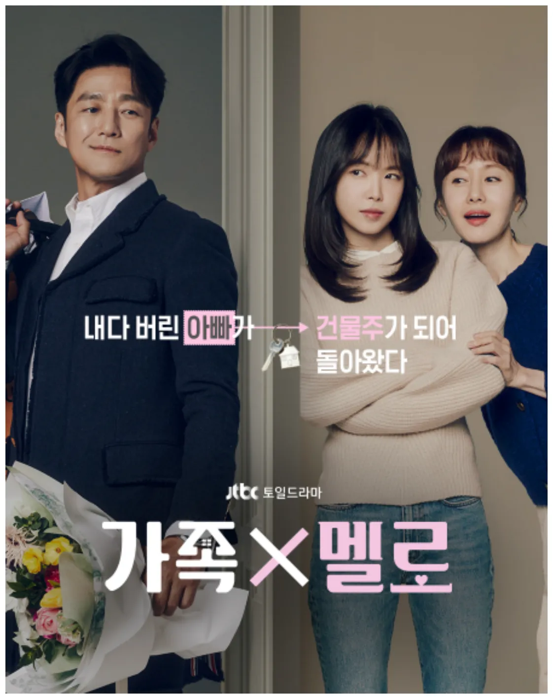'가족x멜로'는 11년 전에 사고뭉치 아빠를 내다 버렸는데 살고 있는 빌라의 새 건물주가 되어 돌아오며 벌어지는 피 튀기는 패밀리 멜로드라마입니다.