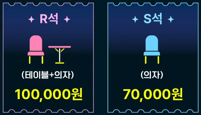R석: 테이블 + 의자 100,000원